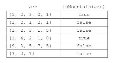 System.out.println(Mountain.isMountain(m2)); //false